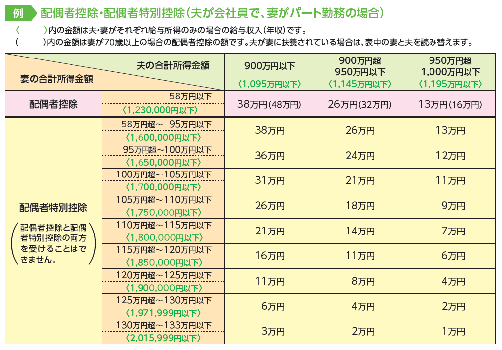 - 夫の合計所得金額が1,000万円を超える場合には、配偶者控除・配偶者特別控除の適用を受けることができません。